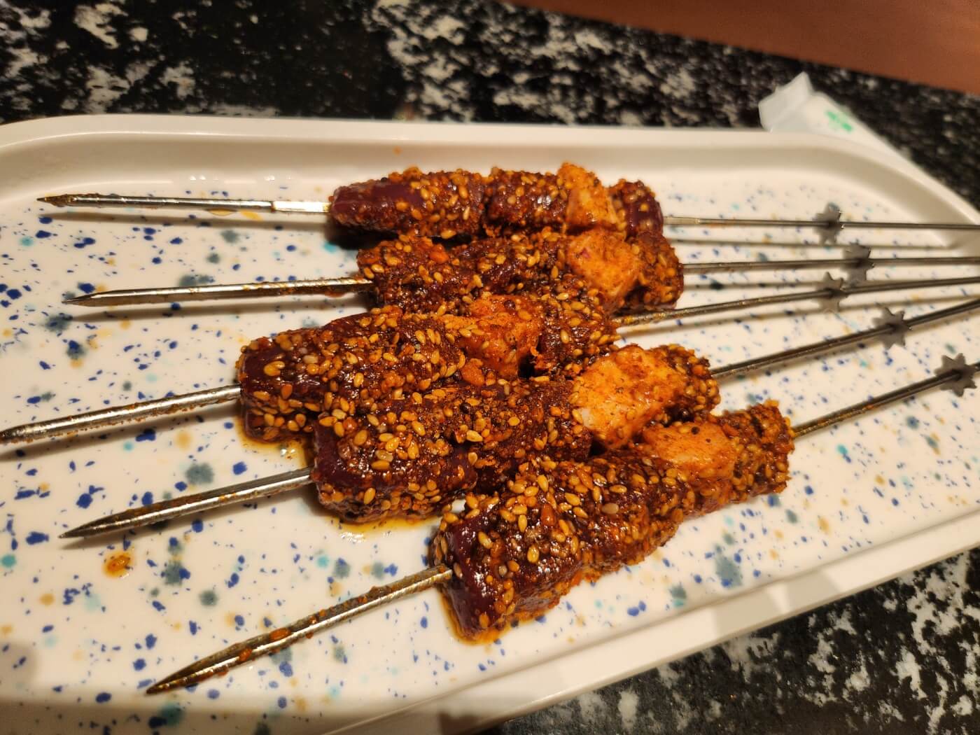 양꼬치는 매콤한 맛이 도는 향신료가 베이스인데 보기에는 많이 매워 보였는데, 은은한 감칠맛과 매운맛이 적당히 느껴졌어요. 맵찔이인 저도 부담 없이 먹을 수 있는 정도였고, 와이프는 평소 마라탕을 즐겨 먹는 편이라 특히 만족해했어요.