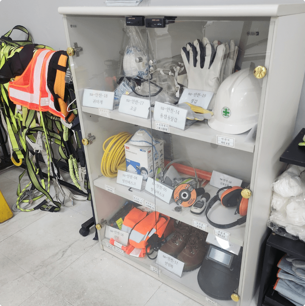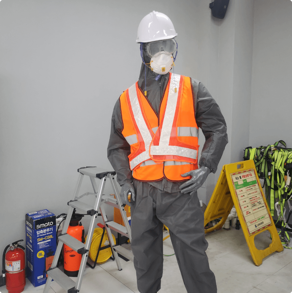 - 안전모, 안전화, 장갑, 안전벨트 등 올바른 착용법