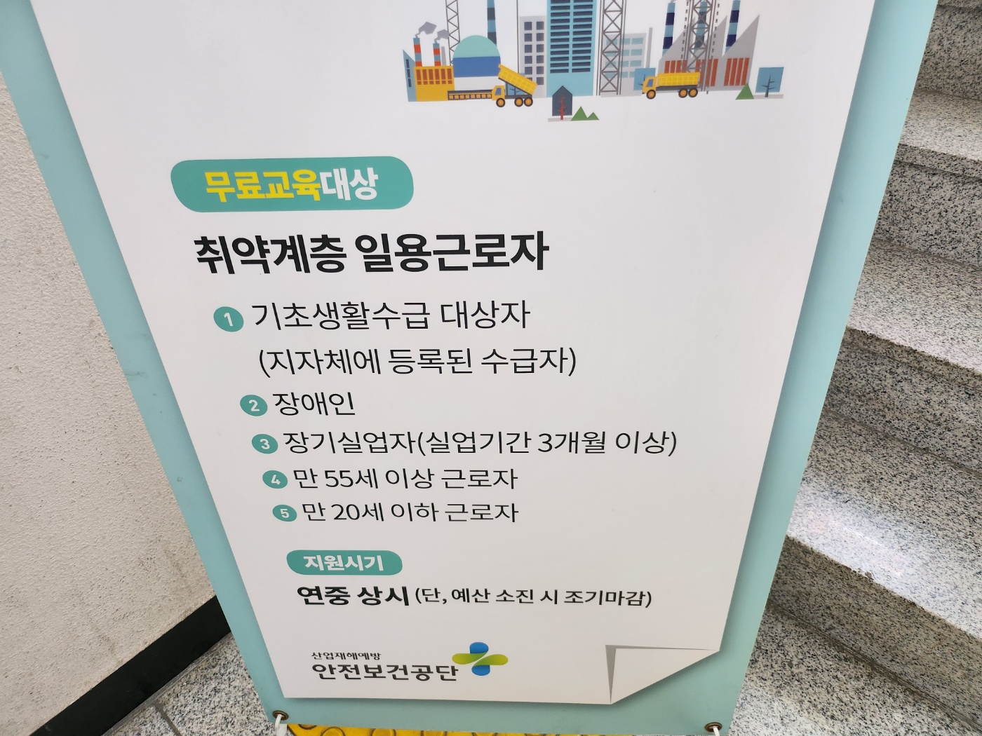 • 무료 교육 대상자 : 기초생활수급자, 장애인, 장기실업자, 만 55세 이상, 만20세 이하