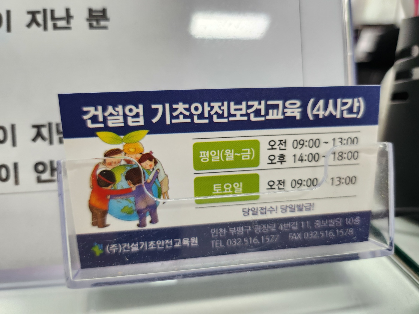 인천건설기초안전교육 부천 건설안전기초교육 기관 시간 조회 이수증 받는곳 건설현장 일용직 노가다 필증 무료 막노동 외국인 부평역 김포 시흥 안산