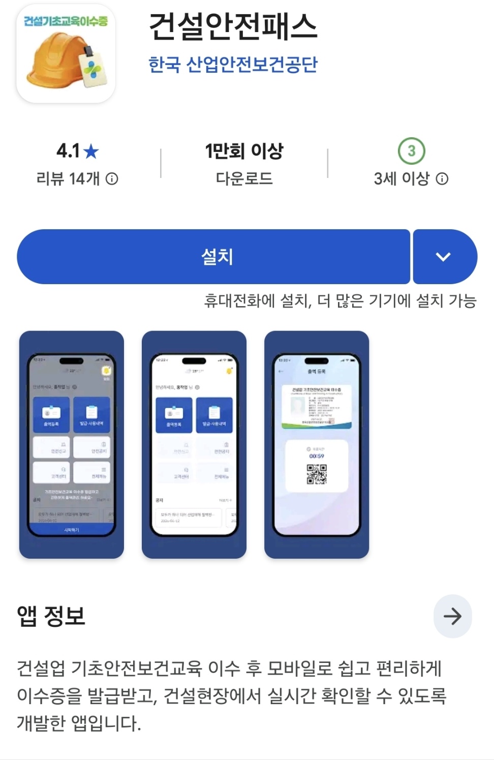 ※ TIP: 건설안전패스 앱은 단순한 이수증 조회 외에도 위험요인 신고, 관리자 확인 기능까지 제공해 앞으로는 안전관리 통합 플랫폼으로 확대될 예정입니다.