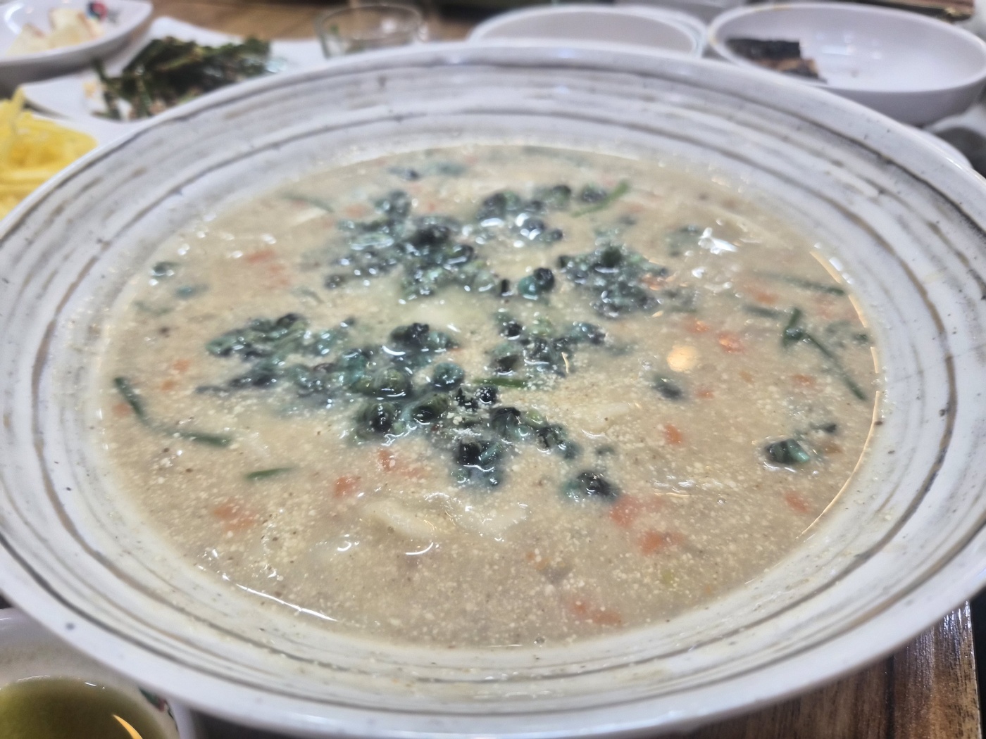 장어구이만 먹기엔 아쉬워서 장어탕과 다슬기들깨수제비도 주문했어요. 장어탕은 국물이 진하면서 비리지 않고 구수했어요.
