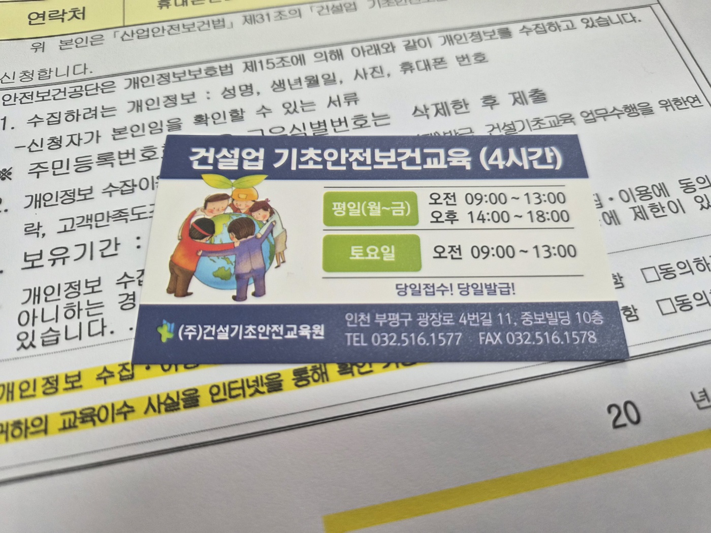 따라서 교육을 받을 때는 반드시 교육기관명과 발급일자를 메모해두는 것이 좋습니다.