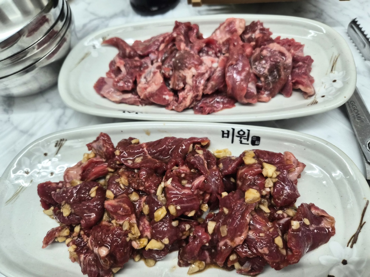 염소고기 특유의 향이 살짝 있을 줄 알았는데, 생고기의 신선함 때문인지 잡내가 거의 없었고, 씹을수록 고소함이 진하게 퍼졌습니다. 양념숯불구이는 또 다른 매력이 있었어요. 양념이 너무 달지 않고, 숯불향과 함께 입안에서 감칠맛이 퍼지더라고요.