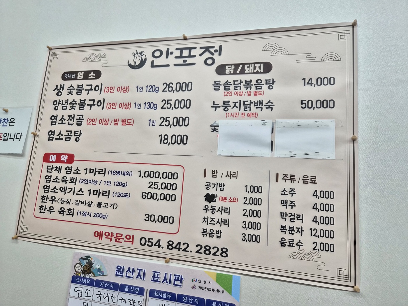 안포정 메뉴 살펴보기 – 염소 생숯불구이부터 전골까지