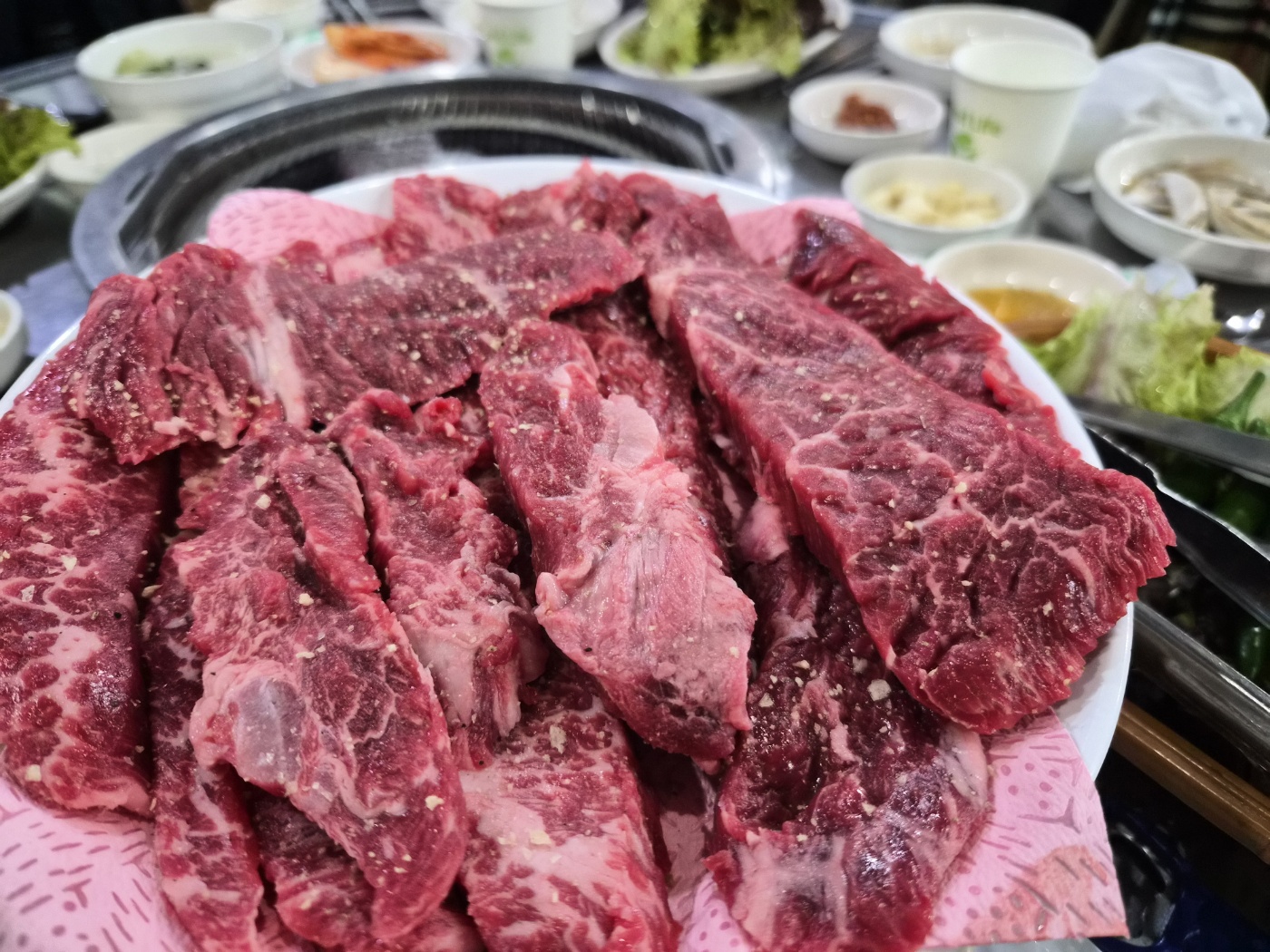 이날의 메인 메뉴는 바로 한우 업진특수부위였습니다. 처음 접시가 나왔을 때부터 “아, 고기 질이 다르다”는 느낌이 들었어요.