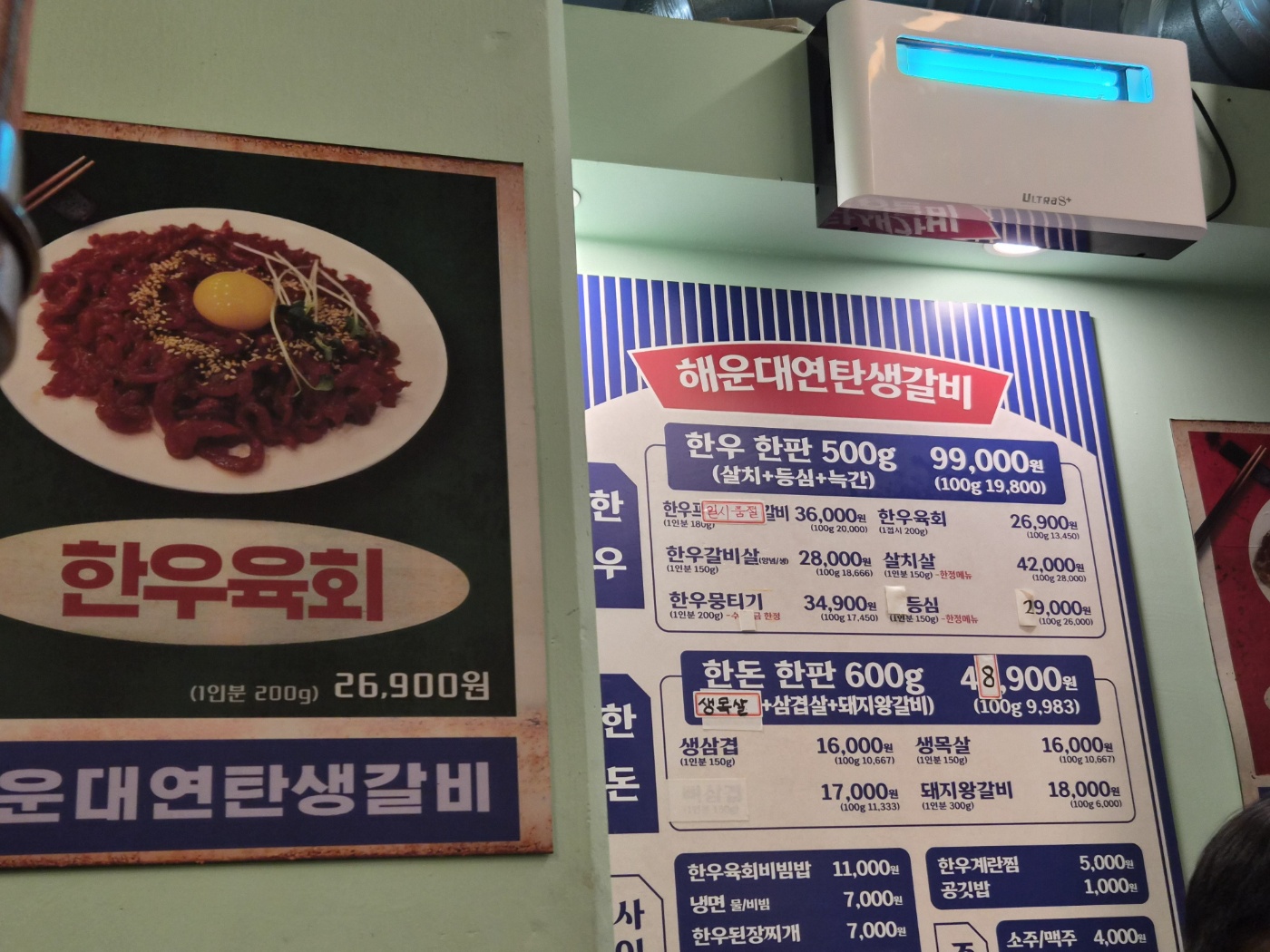 오늘의 메인 메뉴는 당연히 한우한판(99,000원).