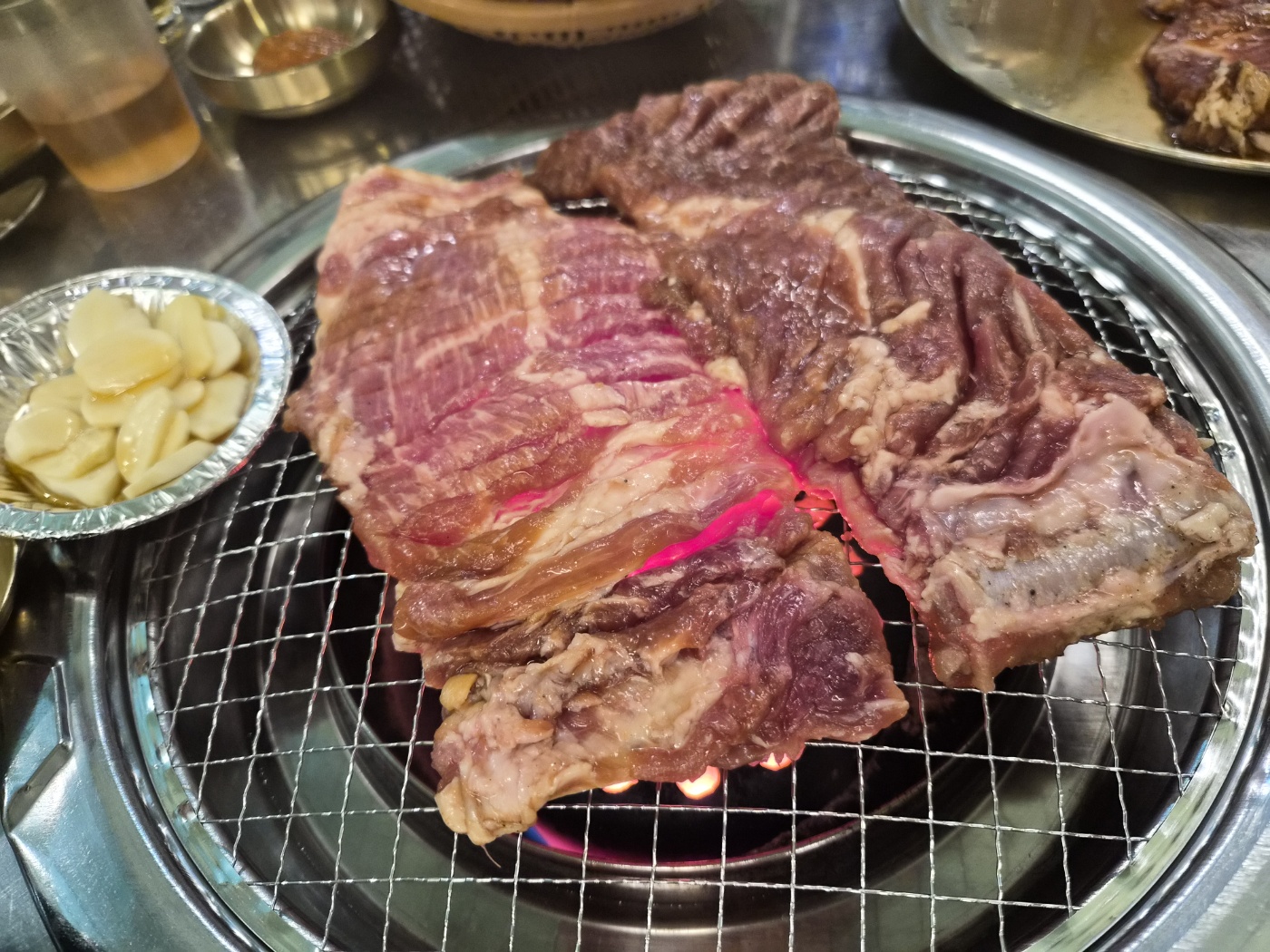 연탄불 특유의 온기가 있어서 그런지 가게 안 분위기가 따뜻하고 포근했습니다. 술 한잔과 함께하는 고기, 이 조합이 주는 행복감이 정말 크더라고요.