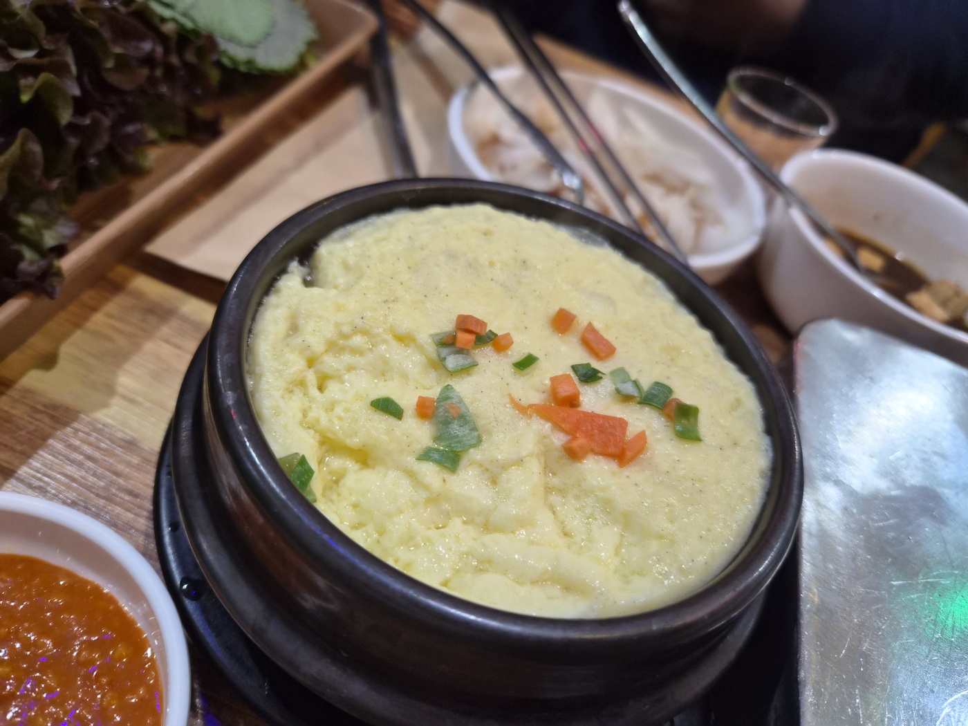 고기를 굽는 사이사이에 자연스럽게 젓가락이 가게 만든 메뉴는 한우육회였습니다. 색감부터 신선함이 느껴졌고, 잡내 없이 깔끔한 맛이 인상적이었습니다. 양념도 과하지 않아 육회의 식감을 잘 살려줬고, 여러 명이 함께 나눠 먹기에도 딱 좋은 메뉴였습니다. 누군가는 고기를 굽고, 누군가는 이야기를 하면서도 자연스럽게 집어먹을 수 있어 모임 분위기를 끊지 않고 이어주는 역할을 했습니다.