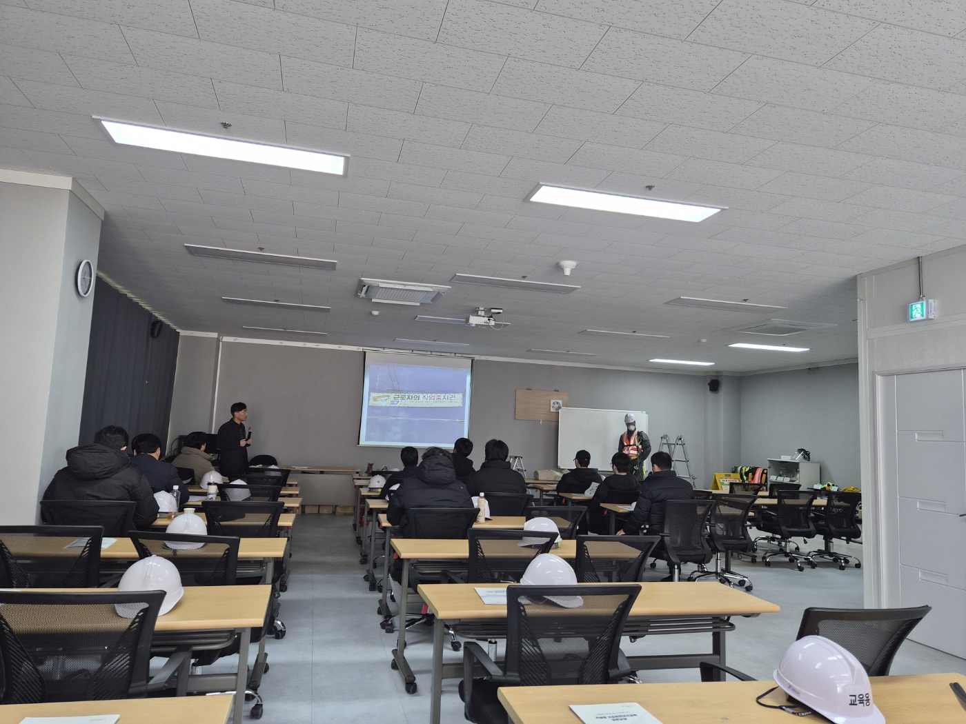 안전모, 안전대, 보호장갑 등 개인 보호구 착용 교육은 매우 실질적으로 이루어집니다. 단순 착용과 올바른 착용의 차이를 실제 사고 사례로 비교하며, 턱끈 미착용, 고리 연결 오류, 형식적인 보호구 착용이 얼마나 치명적인 결과로 이어질 수 있는지를 설명합니다. 이 교육 이후 현장에서 보호구를 대하는 태도가 달라졌다는 평가가 많은 이유도 여기에 있습니다.
