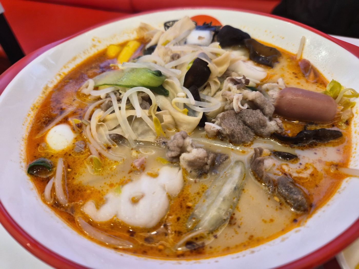 먼저 마라탕은 국물이 생각보다 꽤 진한 편이라 첫 입부터 존재감이 느껴졌어요. 마라 특유의 향이 확 올라오는데, 그렇다고 너무 부담스럽게 강한 느낌은 아니고 적당히 얼얼하면서도 감칠맛이 살아 있었습니다. 너무 맵기만 한 스타일이 아니라서 계속 떠먹게 되는 쪽에 가까웠어요.