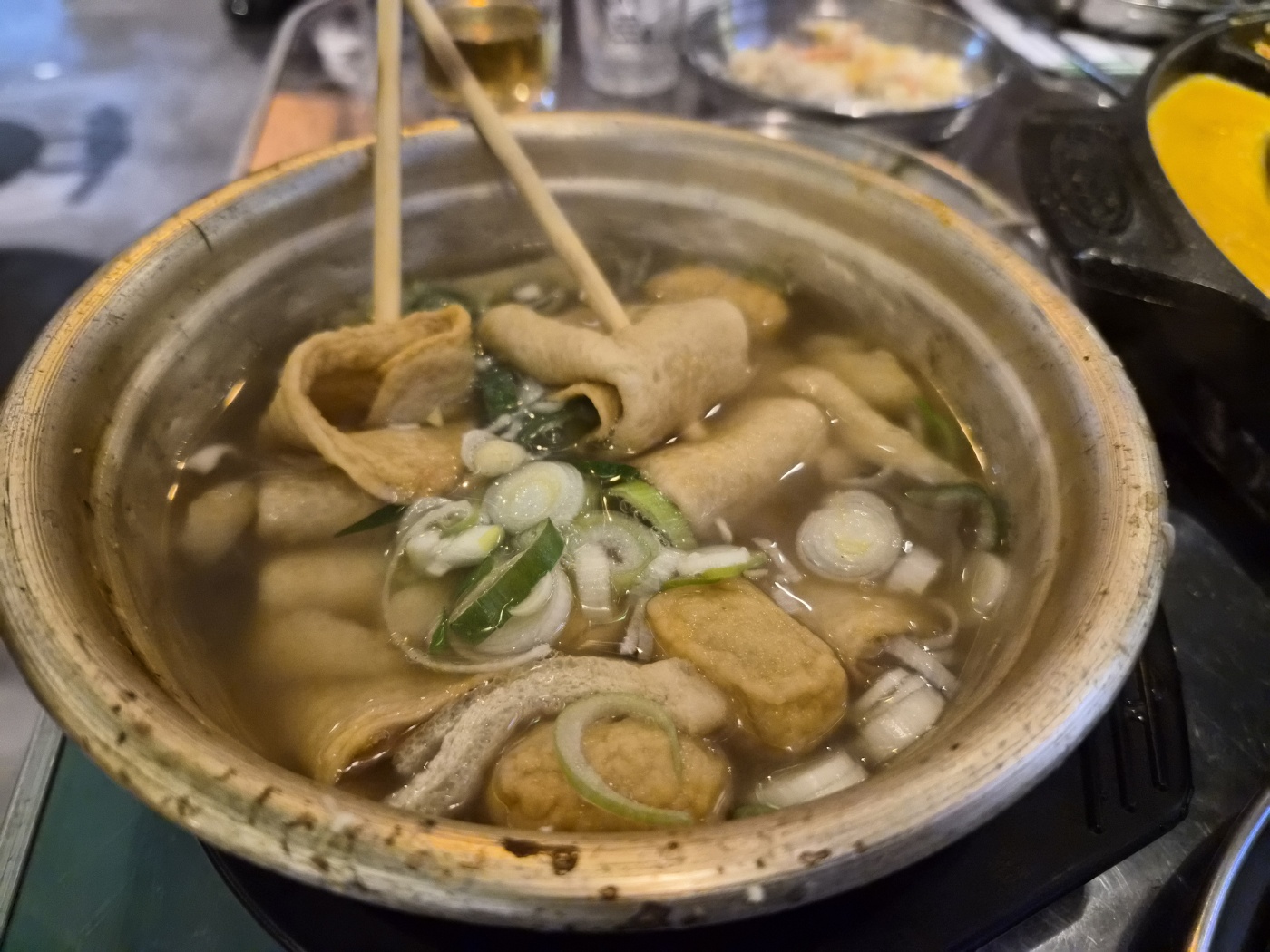 술자리에 국물 메뉴 하나 있으면 전체적인 만족도가 높아지잖아요. 그래서 함께 주문한 오뎅탕도 정말 좋은 선택이었습니다. 숯불계고기와 닭발처럼 불향 있고 양념 있는 메뉴를 먹다가 뜨끈한 국물 한입 마시면 속도 편안해지고, 입안도 정리돼서 더 좋더라고요.