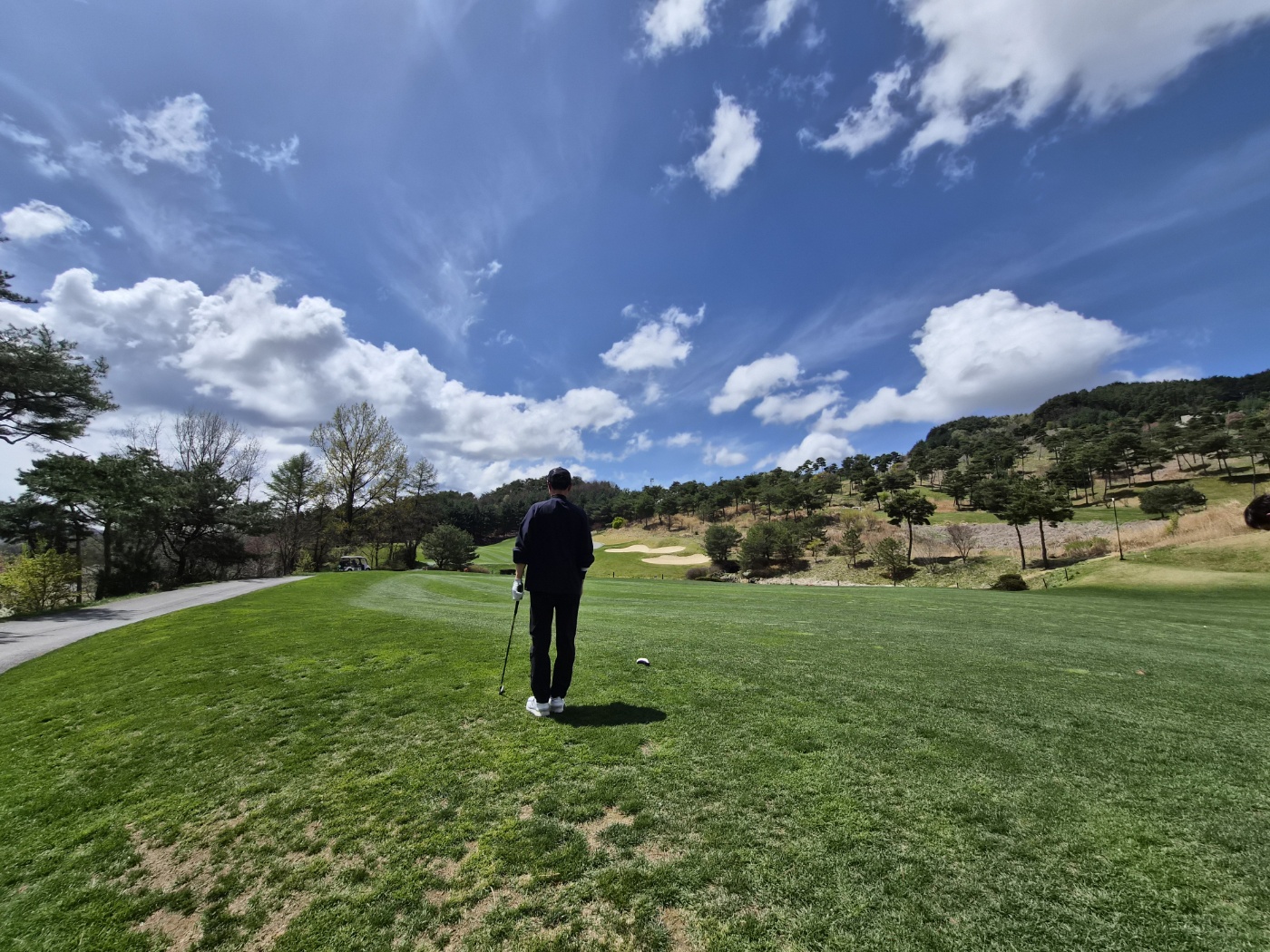 양잔디 코스였는데, 잔디가 전체적으로 푸른빛으로 잘 올라와 있어서 보기만 해도 기분이 좋았습니다. 봄철에는 아직 완전히 올라오기 전인 곳도 종종 있는데, 이날 무주CC는 코스를 도는 내내 잔디 색감이 참 예쁘다는 생각이 들었습니다. 초록이 짙게 살아 있는 코스를 보면 라운딩 자체가 더 산뜻하게 느껴지는데, 그 느낌이 분명히 있었습니다.