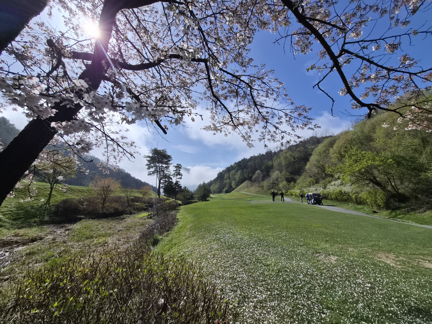 개인적으로는 전반과 후반의 분위기가 달라서 더 좋았습니다. 한 코스 안에서 비슷한 느낌이 반복되면 조금 단조롭게 느껴질 수도 있는데, 무주CC는 마운틴과 레이크의 인상이 달라서 라운딩하는 재미가 더 살아났습니다. 특히 후반으로 갈수록 햇살과 풍경이 어우러지는 느낌이 참 예뻤고, 좋은 사람들과 함께 그 장면을 나누고 있다는 것만으로도 충분히 만족스러운 시간이었습니다. 그래서 이번 라운딩은 운동이라기보다, 봄날의 좋은 풍경 속을 천천히 걸어가는 시간처럼 느껴졌습니다.